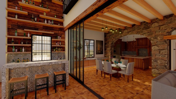 El concepto de la vivienda es la fusión o integración de la arquitectura moderna con muros ruina en el que los espacios amplios con cambios de alturas permiten que la vivienda se abra hacia la naturaleza y hacia las vistas del lugar.