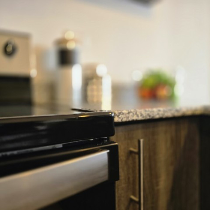 Gabinetes y top de granito en la cocina, gabinetes y top en lavamos; closets grandes con puertas en las habitaciones.