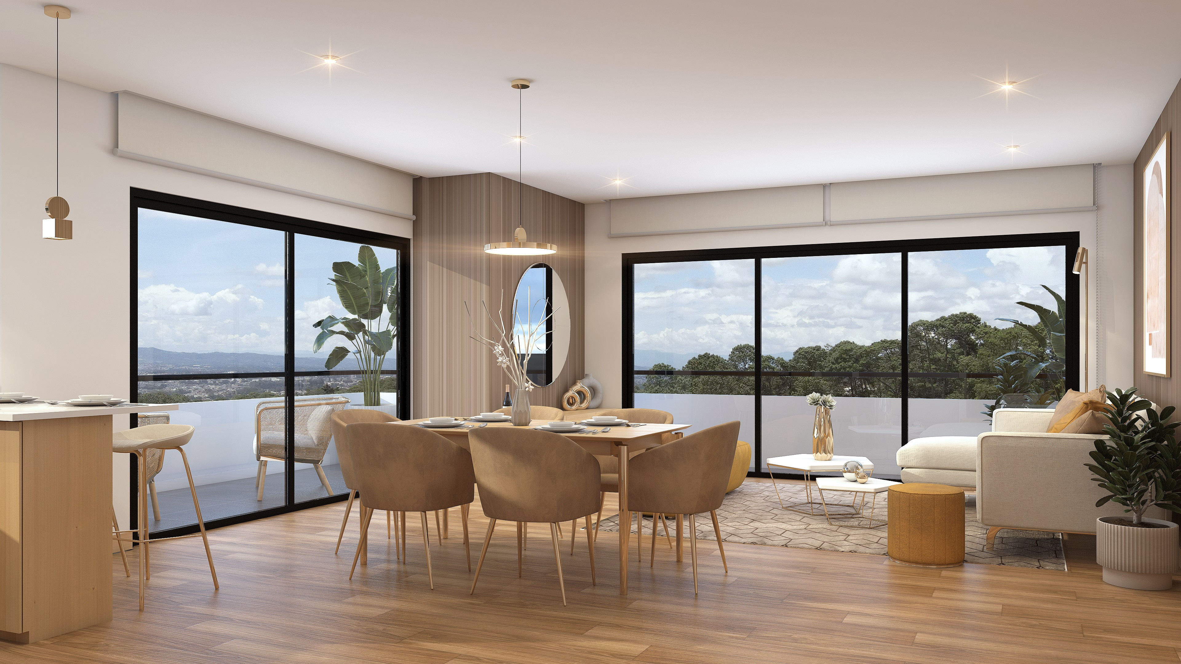 Cada espacio está diseñado para reflejar la estética moderna y brindar el máximo confort. La integración de elementos naturales y modernos crea un ambiente único, ofreciendo un hogar que se adapta a tus necesidades y te permite disfrutar de una vida armoniosa y equilibrada.