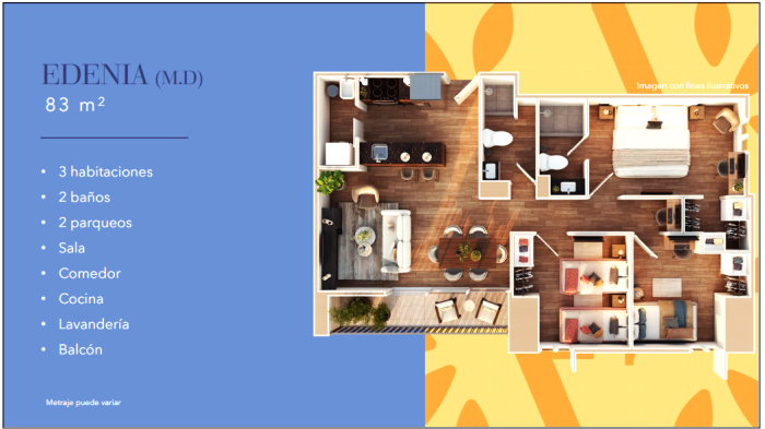 - Área Total de 108.33 mts2 de los cuales, 83.33 mts2 son habitables