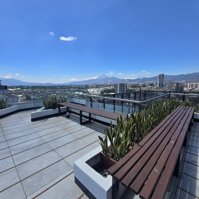Sky lounge, coworking, bonitos espacios pet friendly, gimnasio con ventanales hermosos, hermoso Rooftop con piscina que brinda hermosas vistas para disfrutar de una tarde con amigos y familia.