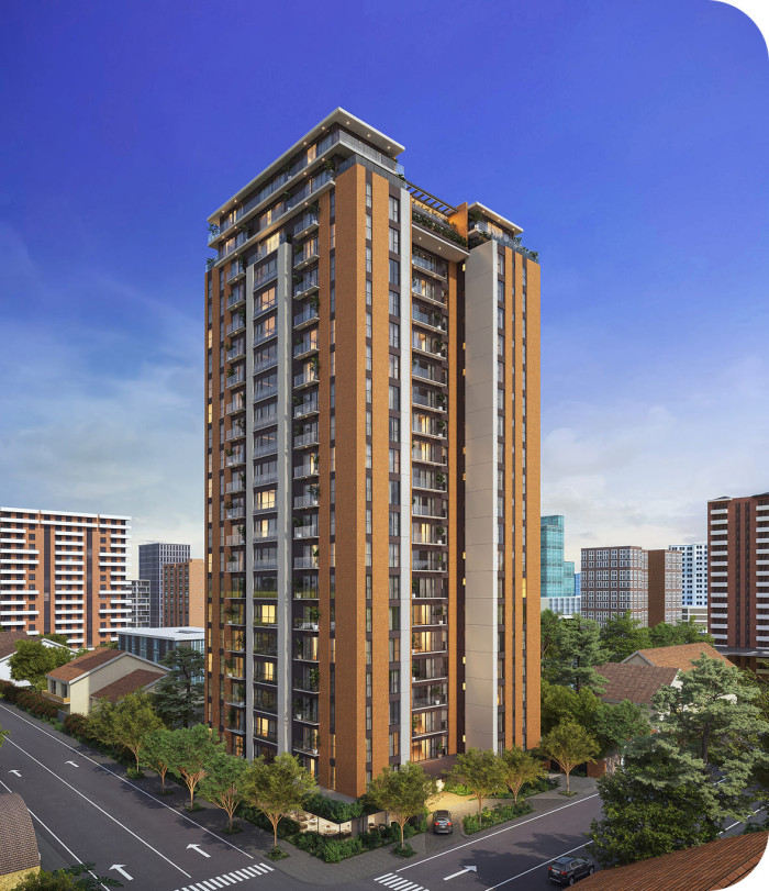 21 niveles de construcción, apartamentos de 1, 2 y 3 habitaciones, con más de 14 amenidades, 8 sótanos de parqueo