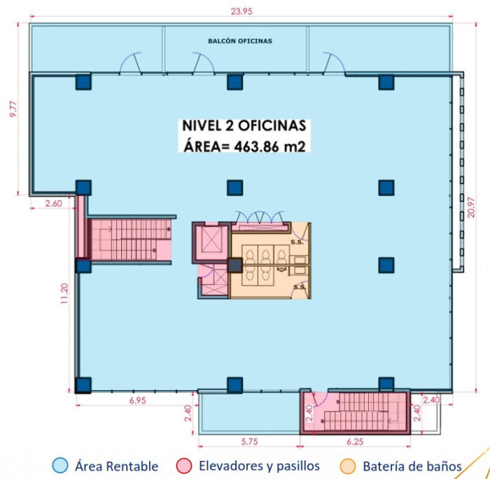Oficina cuenta con 463.86m² y con 2 baterías de baños